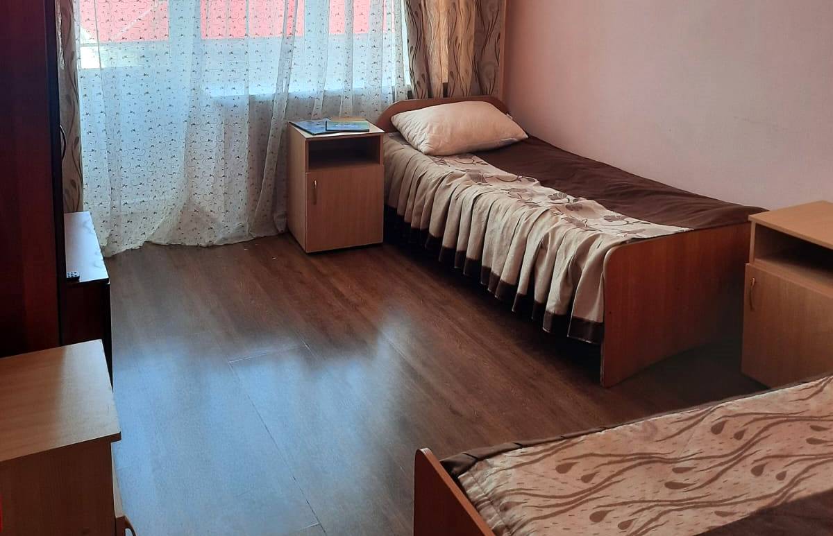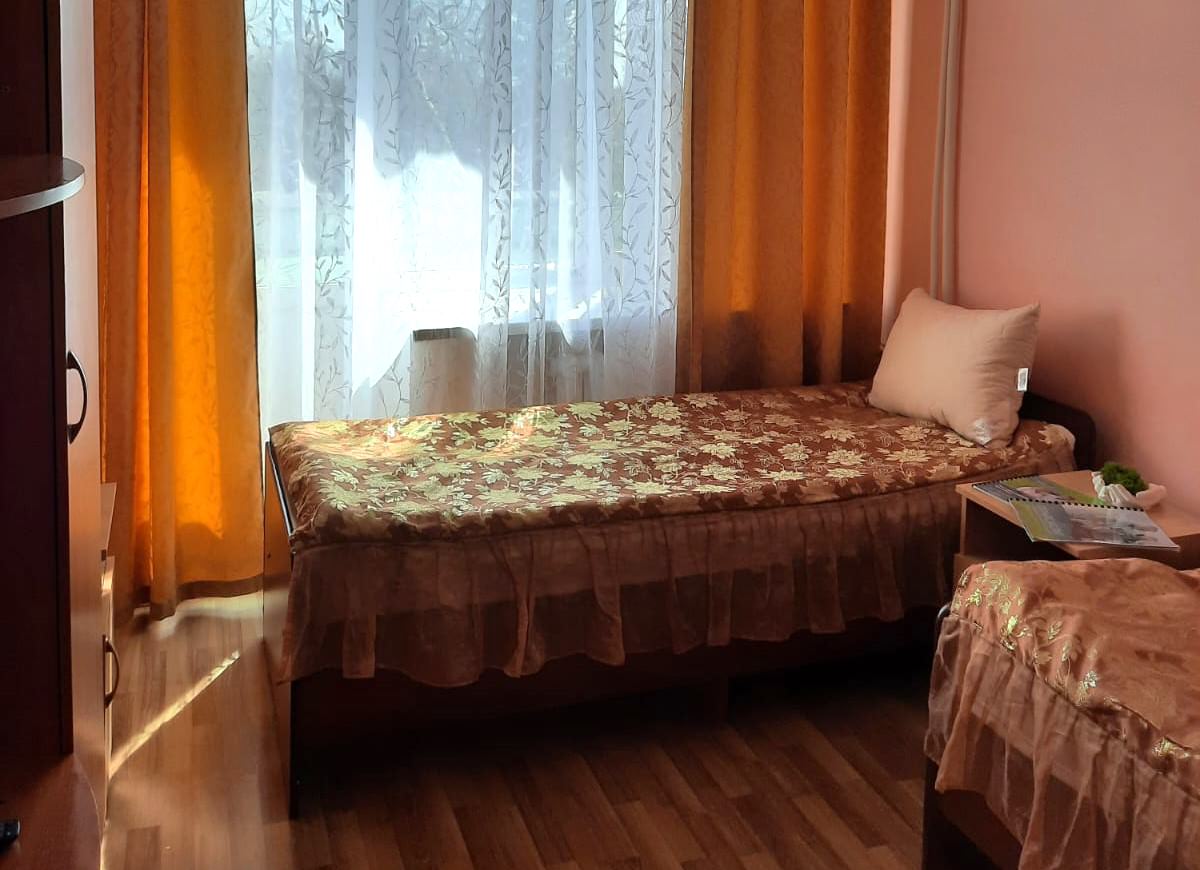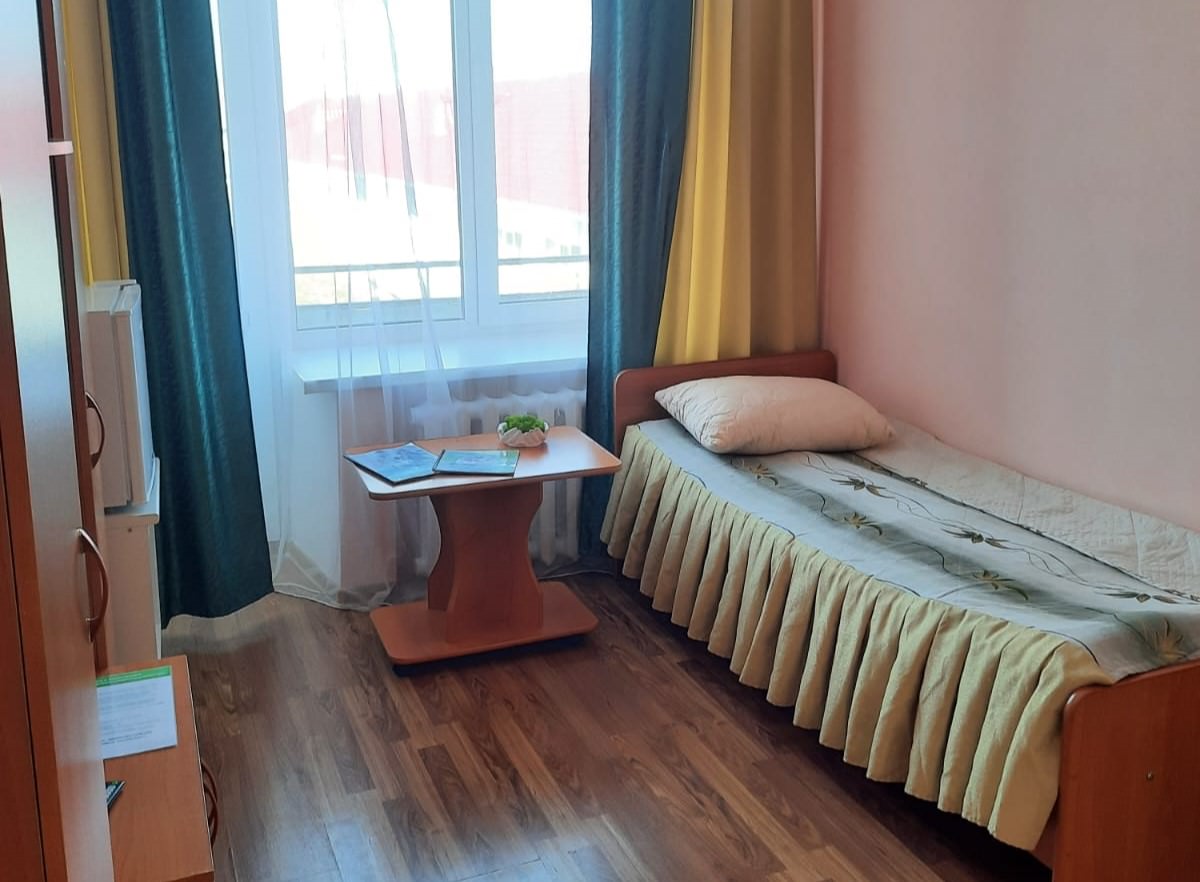 Площадь номера - 30 кв.м. 1 осн. место. Мебель: кровать односпальная, прикроватная тумбочка, столик журнальный, шкаф. Оборудование: телевизор, холодильник. Санузел на блок. Сервис: смена полотенец, смена постельного белья, уборка номера.